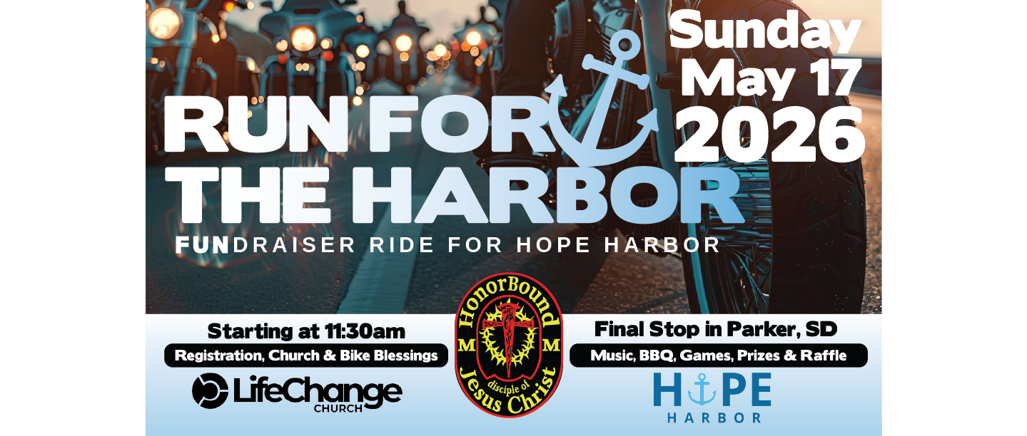 Run for the Harbor 2026 Join us for the FUNdraiser event for Hope Harbor. Ride or Drive! 5 stops with skill based games. Highest Score wins CASH PRIZE! Registration begins at LifeChange Church in the West Parking lot at 11:30. Join us for the church service, have your bike blessed, and check-in to receive your […]